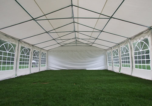 Stabiles Stecksystem mit PVC Planen, Sprossenfenstern und 2 Eingängen.